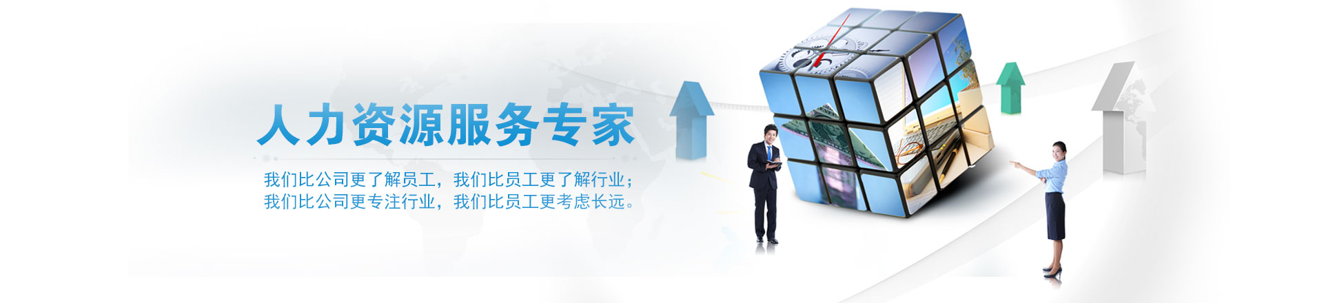 ?????我們將根據各企事業單位的需求,提供優(yōu)質的人力資源外包服務。在面向二十一世紀的今天,我們將與時俱進的順應國際化人力資源發(fā)展趨勢,創新、超越、不斷進取,以我們的專業為客戶創造更大的價值,追求與客戶共同展開騰飛的雙翼,努力創造明日的輝煌。